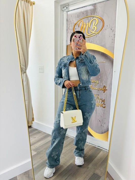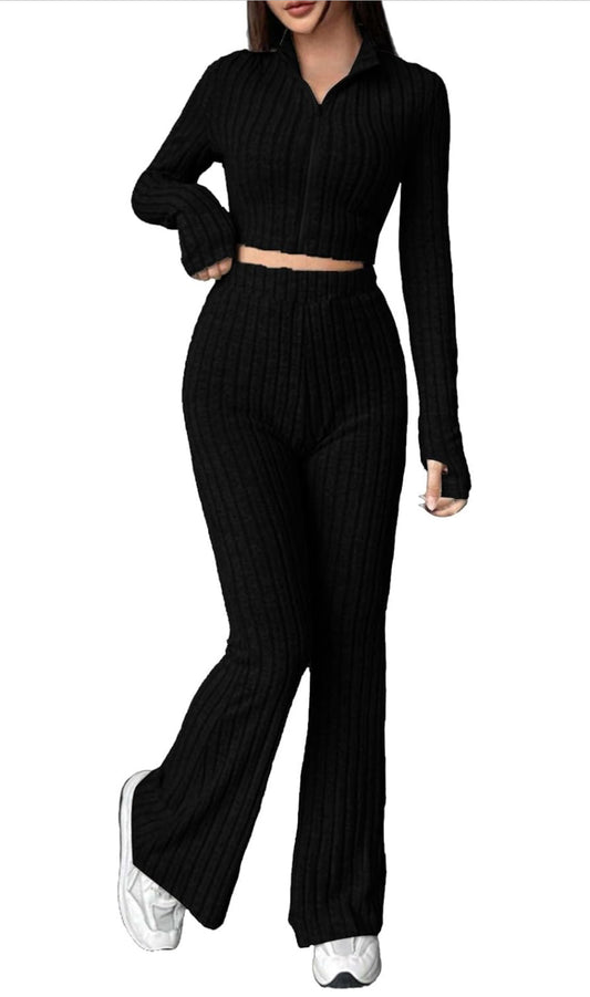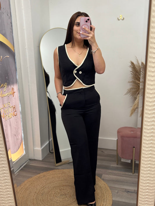 Bow Tie Back Crop Top and Wide-Leg Pants Set