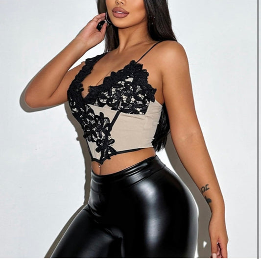 Women's Sexy Sleeveless V- Neck Floral Lace Appliqué Corset Top