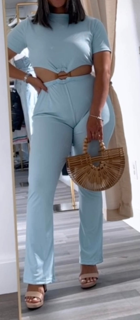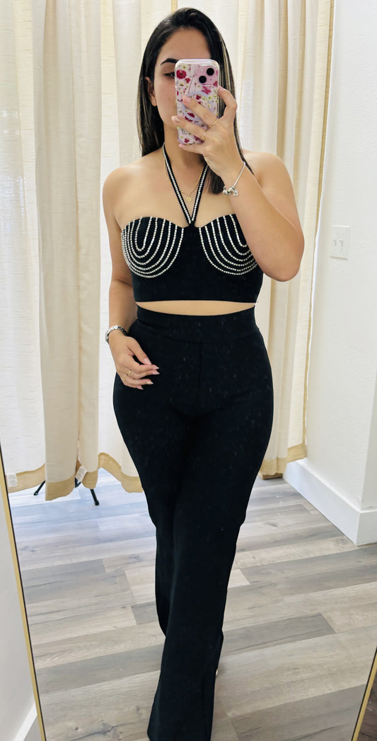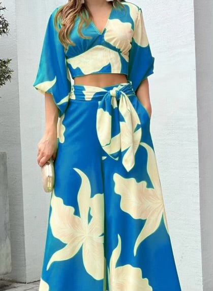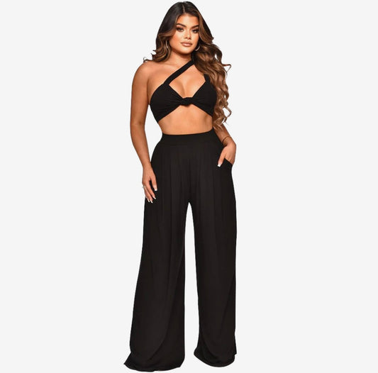Bow Tie Back Crop Top and Wide-Leg Pants Set