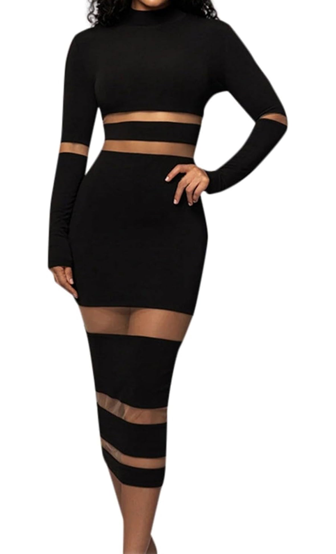 This stunning two-tone midi dress combines sophistication with a hint of allure. Featuring sleek long sleeves and strategically placed sheer panels, this dress accentuates your curves while maintaining an elegant look. Perfect for evening events, cocktail parties, or date nights, its form-fitting design ensures a flattering silhouette. Available in classic black or chic white, this dress will elevate your wardrobe with its modern and stylish appeal. Pair it with heels and minimal accessories to complete the look!
