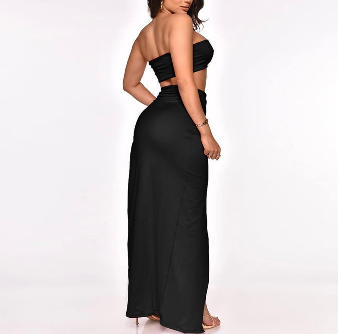 Women's 2 Piece Summer Dress Sexy Crop Top High Slit Bodycon Maxi Skirt Set Cocktail Prty Dresses