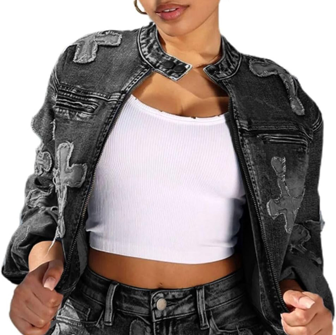 Elevate your style with this trendy Distressed Cross Denim Jacket. Featuring a modern cropped fit, unique cross patterns, and a faded black wash, this jacket effortlessly combines edgy vibes with casual comfort. Perfect for layering over tanks, tees, or dresses, it’s a versatile piece for any occasion. Whether you’re out on the town or keeping it casual, this denim jacket will be your go-to for a standout look.
