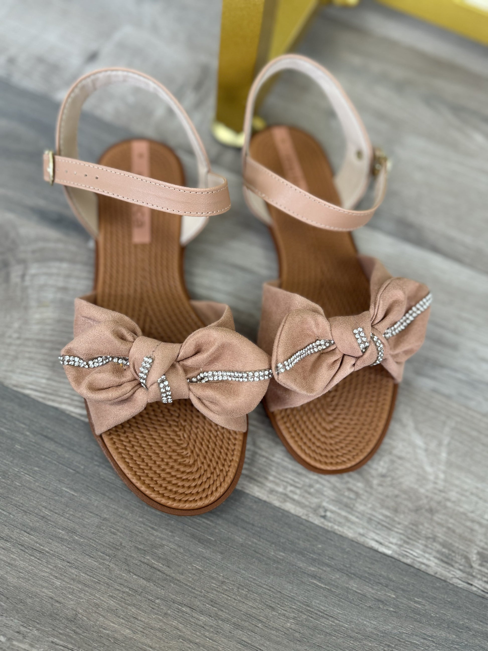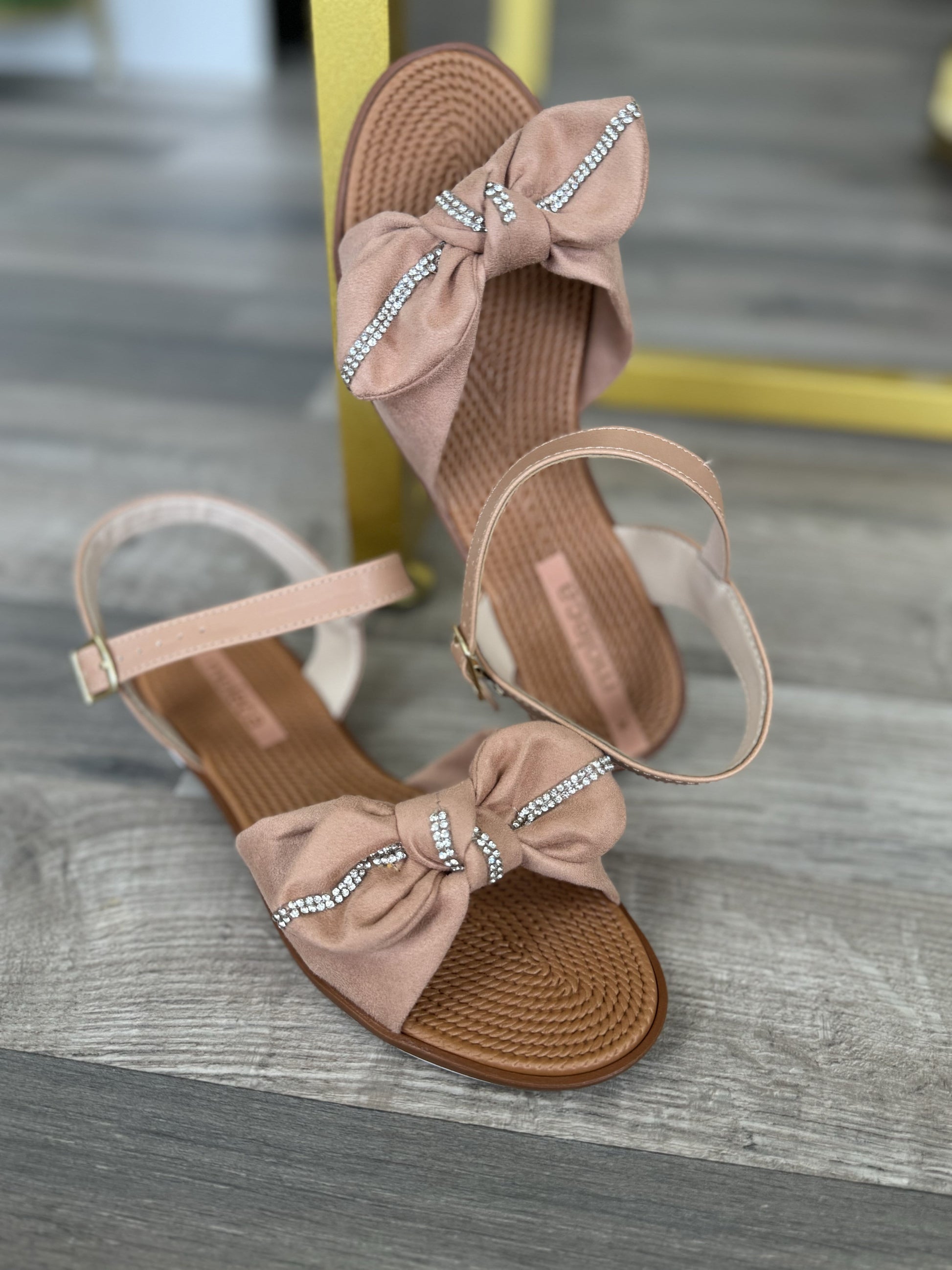 Add a touch of elegance to your casual look with these bow-embellished sandals. Featuring a soft, stylish bow with sparkling rhinestones, they are perfect for adding a hint of glamour to your everyday outfits. The comfortable cushioned sole and secure ankle strap make them ideal for all-day wear. Ideal for summer days or casual outings, these sandals bring together comfort and chic effortlessly.