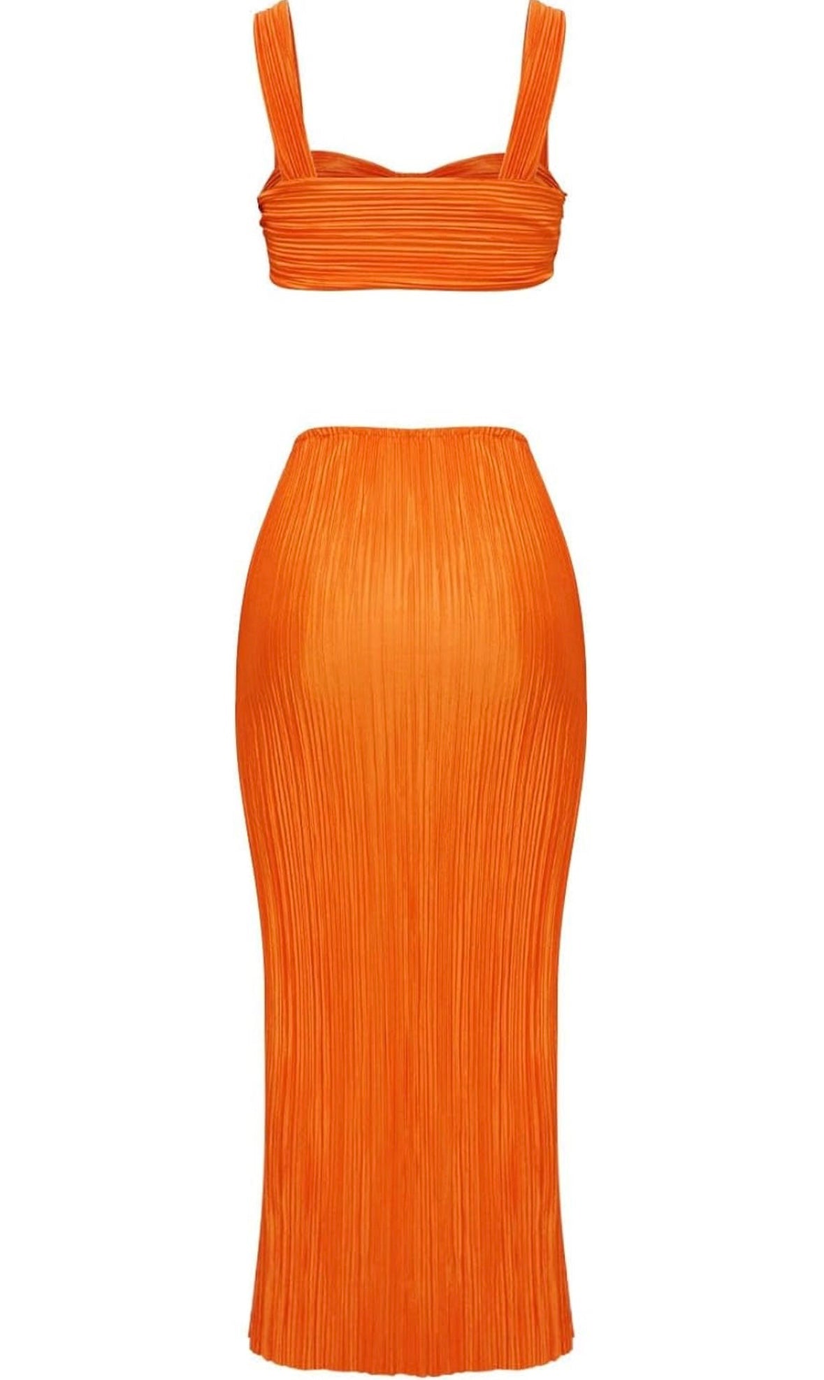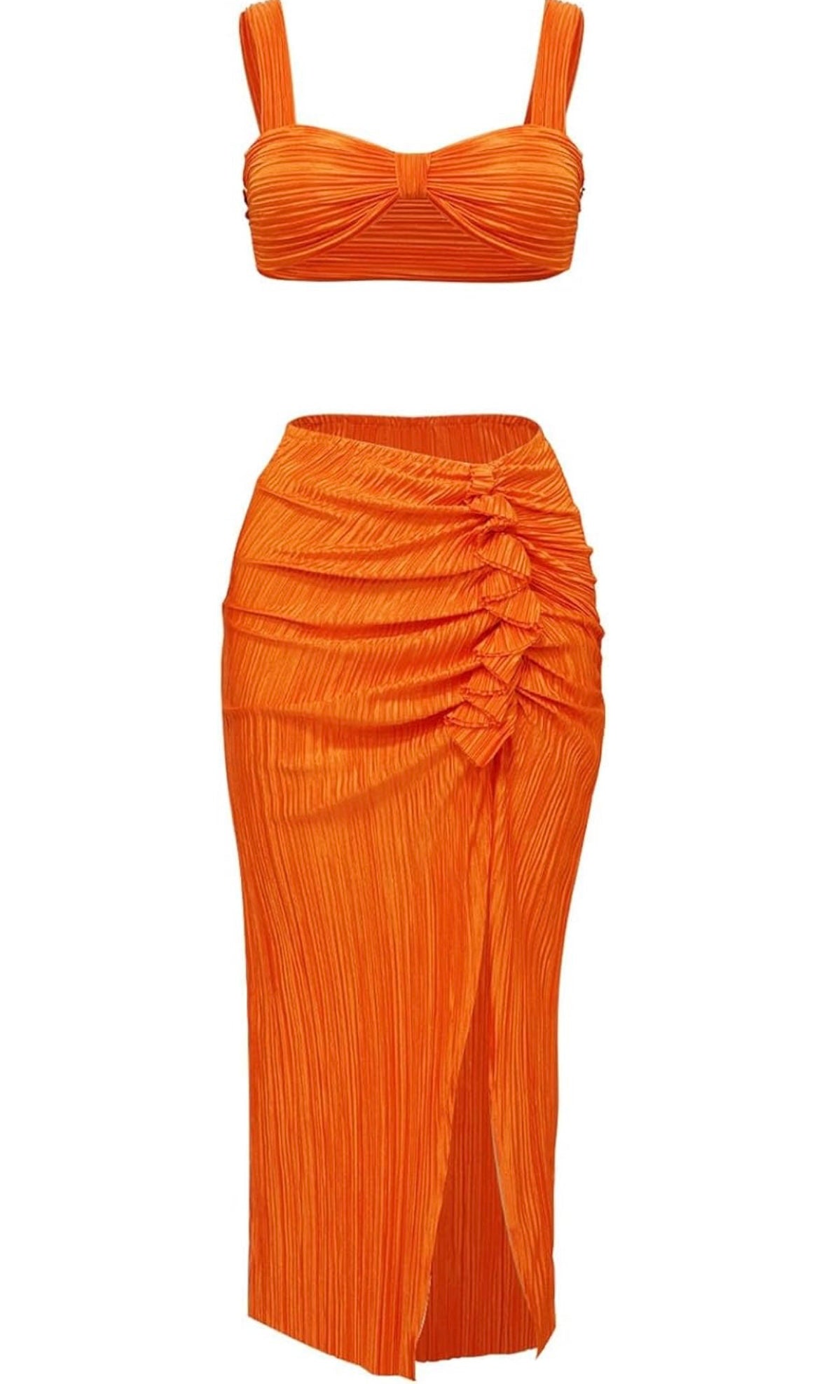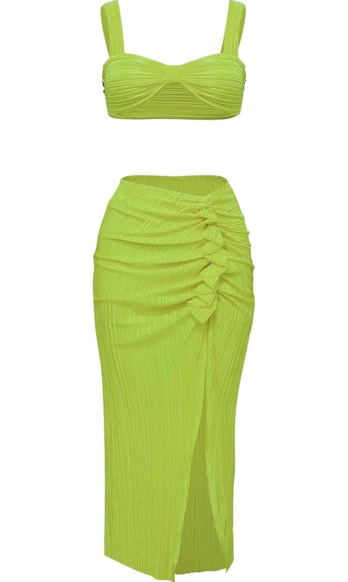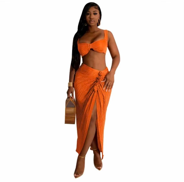 Women's Sexy Temperament Open Back Suspender Top with Split Pleated Skirt Set Club Party Set